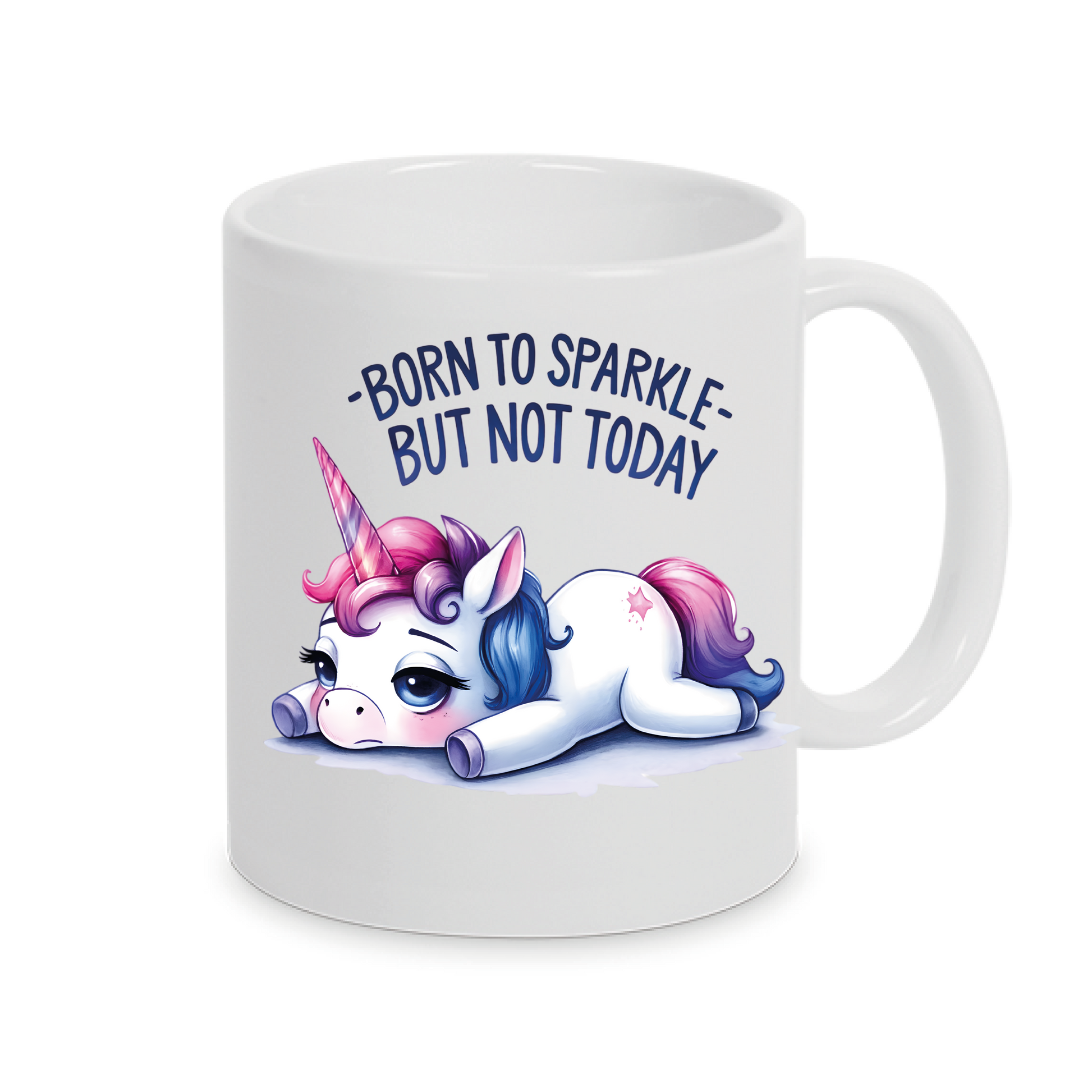 Freche Einhorn-Tasse mit lustigen Spruch Born to Sparkle auch mit Namen